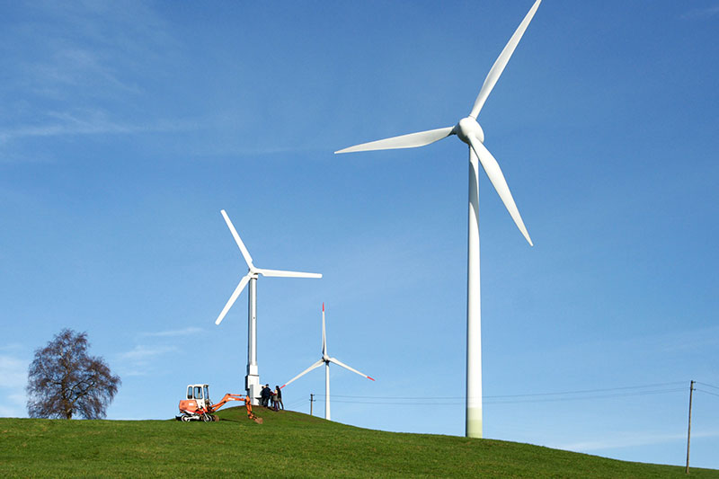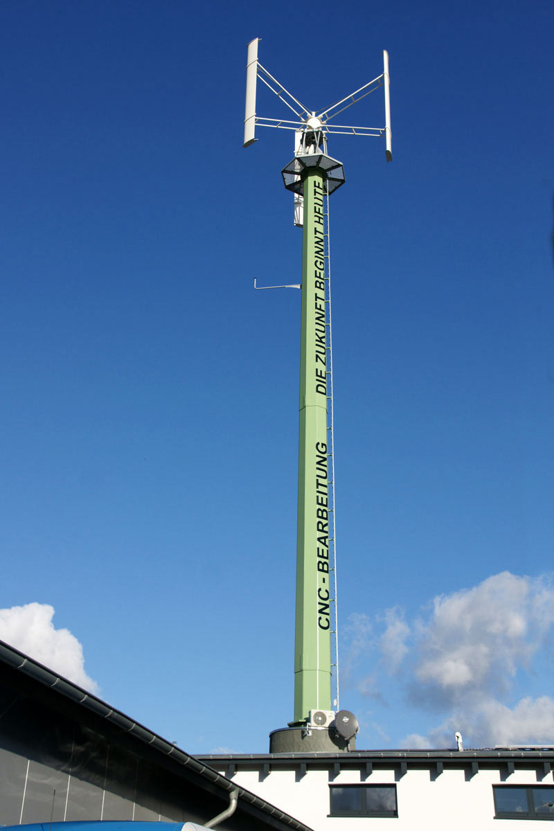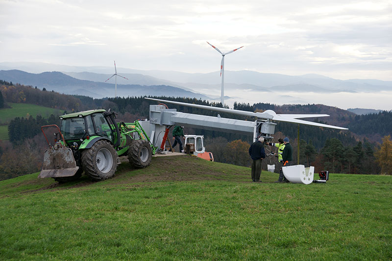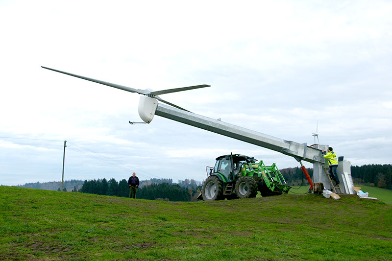 Für einen Landwirt mit Weidewirtschaft im Schwarzwald hat SSG ein Windkraftwerk 15 kw/h, kombiniert mit einem hydraulisch kippbaren Turm gebaut. Dieses kann nicht nur den landwirtschaftlichen Betrieb sondern auch dessen Melk-/Kühlanlagen nahezu vollständig mit Eigenenergie versorgen. Durch unsere Engineeringleistungen für Gründung und Turm konnten sowohl Fundament als auch Turmanlage in Eigenleistung des Landwirtes auf seiner Weide auf dem Berggipfel errichtet werden.